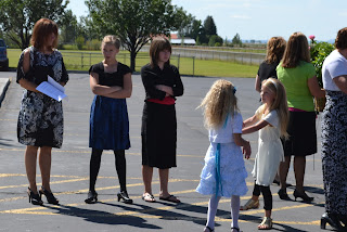 Saturday was the funeral. I decided that I needed to read the life sketch for grandma-not sure why, but I felt like I needed to be part of it. The funeral was nice--my mom and sister sang, Clyde Hymas told a few stories about my grandma and grandpa, and we had a closing hymn. Such a nice service. The weather was beautiful and perfect for the bagpipes. Kim played the bagpipes as the coffin was being taken from the church. What a surreal experience. Again---everyone should experience bagpipes at a funeral and graveside service (maybe not twice in a week-but once in a lifetime). Traveling to the cemetery feels like it takes forever--but once we arrived, the weather was perfect. The night before we had a nasty rain storm--so we believe grandma won the argument on what the weather should be. ;-) After the funeral everyone headed back to the church and enjoyed the luncheon the relief society prepared. What great food-and I believe I tried all 6 or more funeral potatoes.